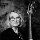 Claudia ist kleiner als ihr Kontrabass, dafür kommt sie mit ihm ganz groß raus und ist bei uns für die tiefen Töne zuständig.
